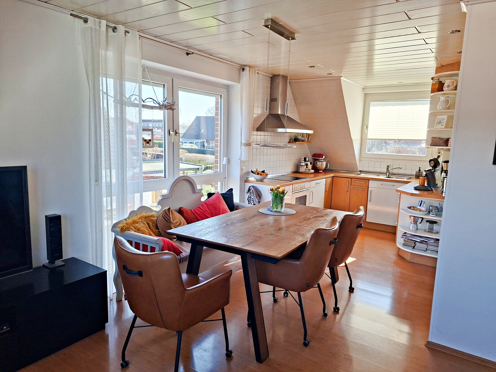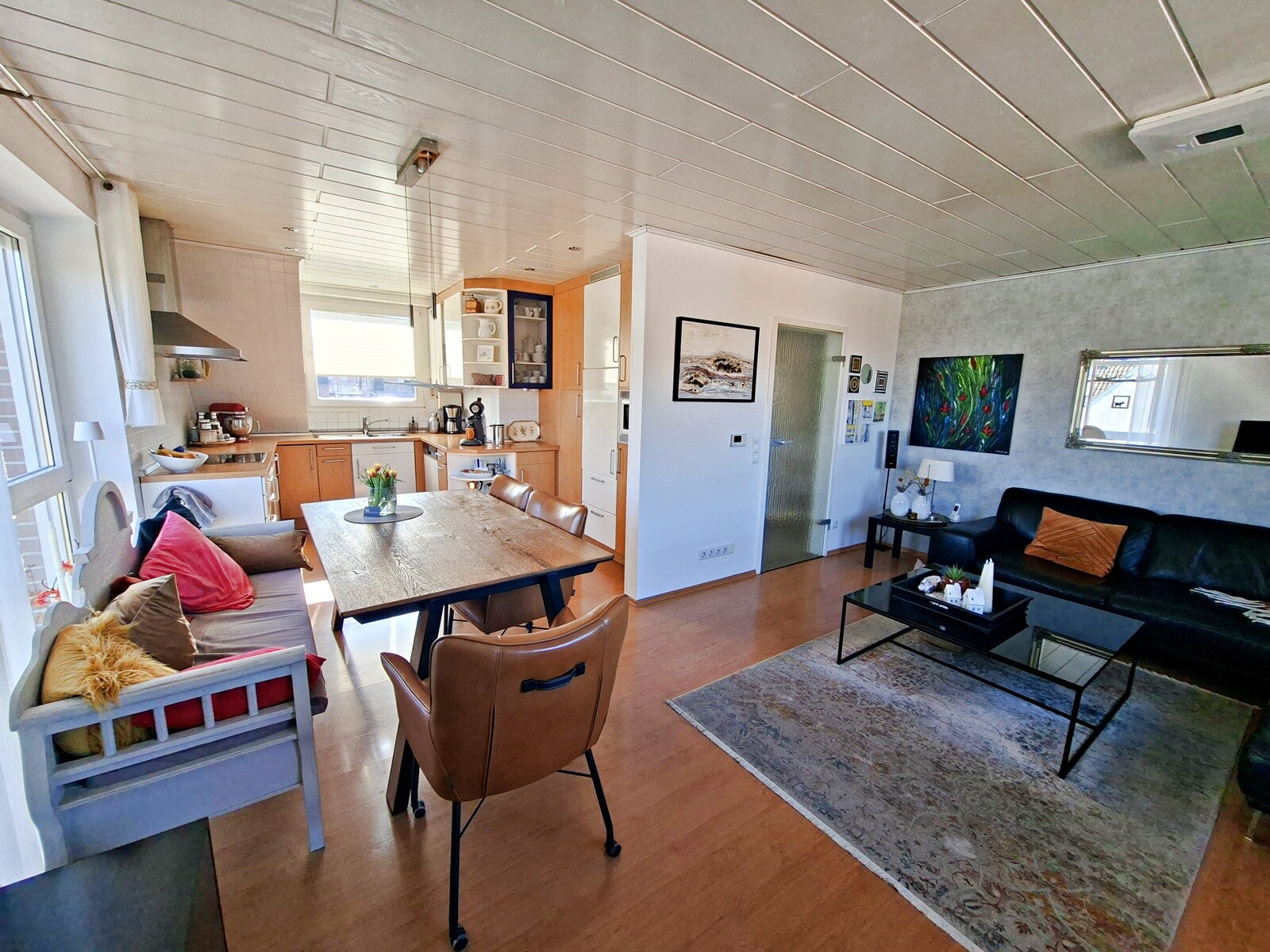 Das Dachgeschoss verfügt über einen offenen Wohn-/Essbereich mit Küche, ein Bad mit Dusche und WC, ein Gäste-WC, einen Abstellraum und drei Schlafzimmer.