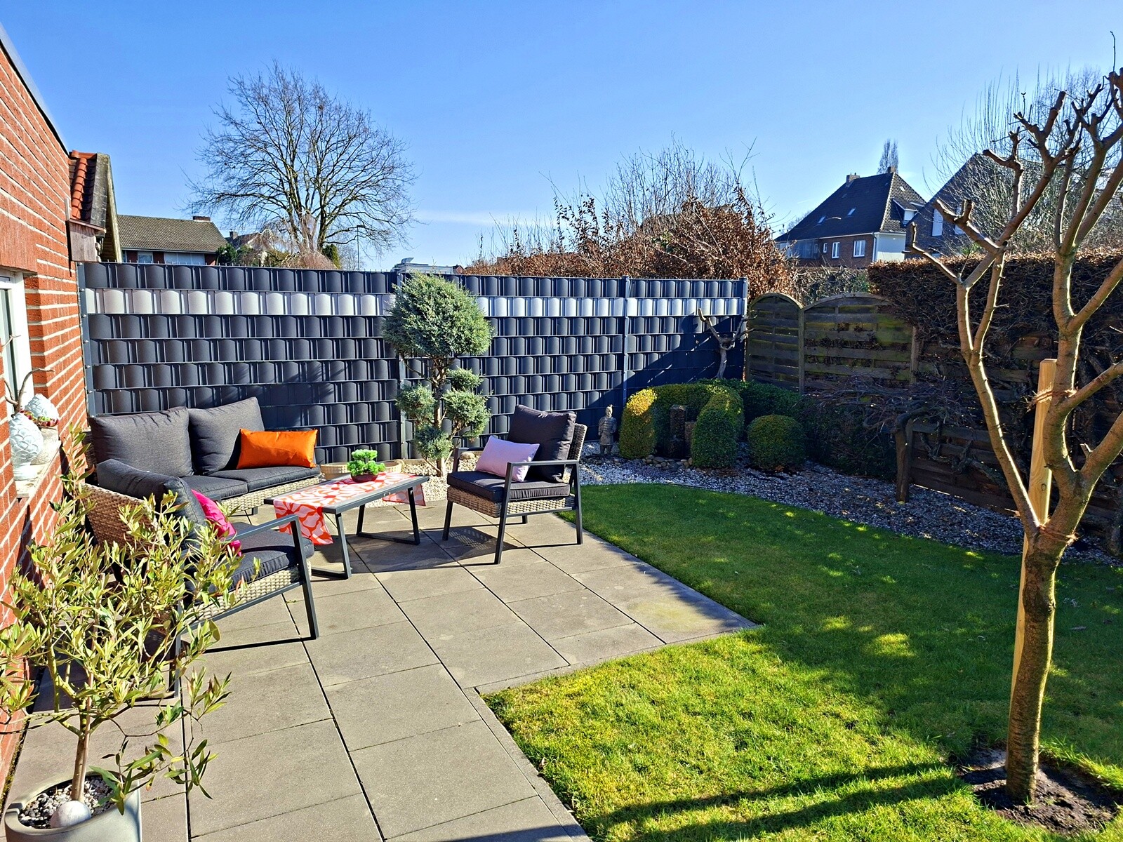 Die im Jahr 2022 neu angelegte Terrasse mit Glasüberdachung und eine zusätzliche Terrasse im hinteren Gartenbereich laden zum gemütlichen Verweilen ein.